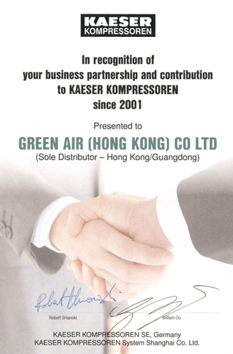 明利(香港)有限公司{Green Air (Hong Kong) Co. LTD.}是德國(guó)凱撒授權(quán)在中國(guó)廣東省和港澳地區(qū)的總代理。廣州市明愷工業(yè)設(shè)備有限公司 是 明利(香港)有限公司 在中國(guó)大陸注冊(cè)投資的一家外資公司,主要負(fù)責(zé)凱撒空壓機(jī)及其后處理系統(tǒng)在中國(guó)廣東省的銷售、安裝、維修服務(wù)。明利(香港)有限公司于1993年開始跟KAESER合作,我們衷心希望能通過我們的努力和您的配合,把空壓機(jī)行業(yè)的先進(jìn)技術(shù)介紹給每一個(gè)客戶,從而更好地貫徹KAESER的宗旨,樹立KAESER空壓機(jī)的良好形象。